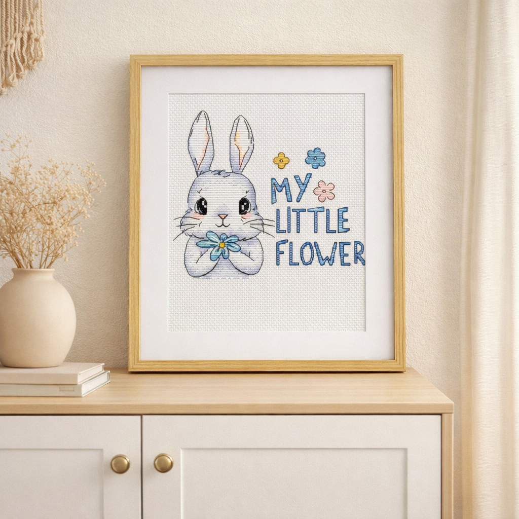 Featuring an adorable bunny holding a delicate flower and soft pastel details, this design is perfect for nurseries, children’s rooms, or heartfelt handmade gifts.